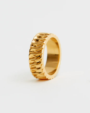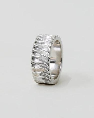 A heavyweight band crafted in a way to emulate the waves of the ocean. The beauty of this ring is the way it catches the sunlight, reminiscent of the sunlight reflecting off the water.