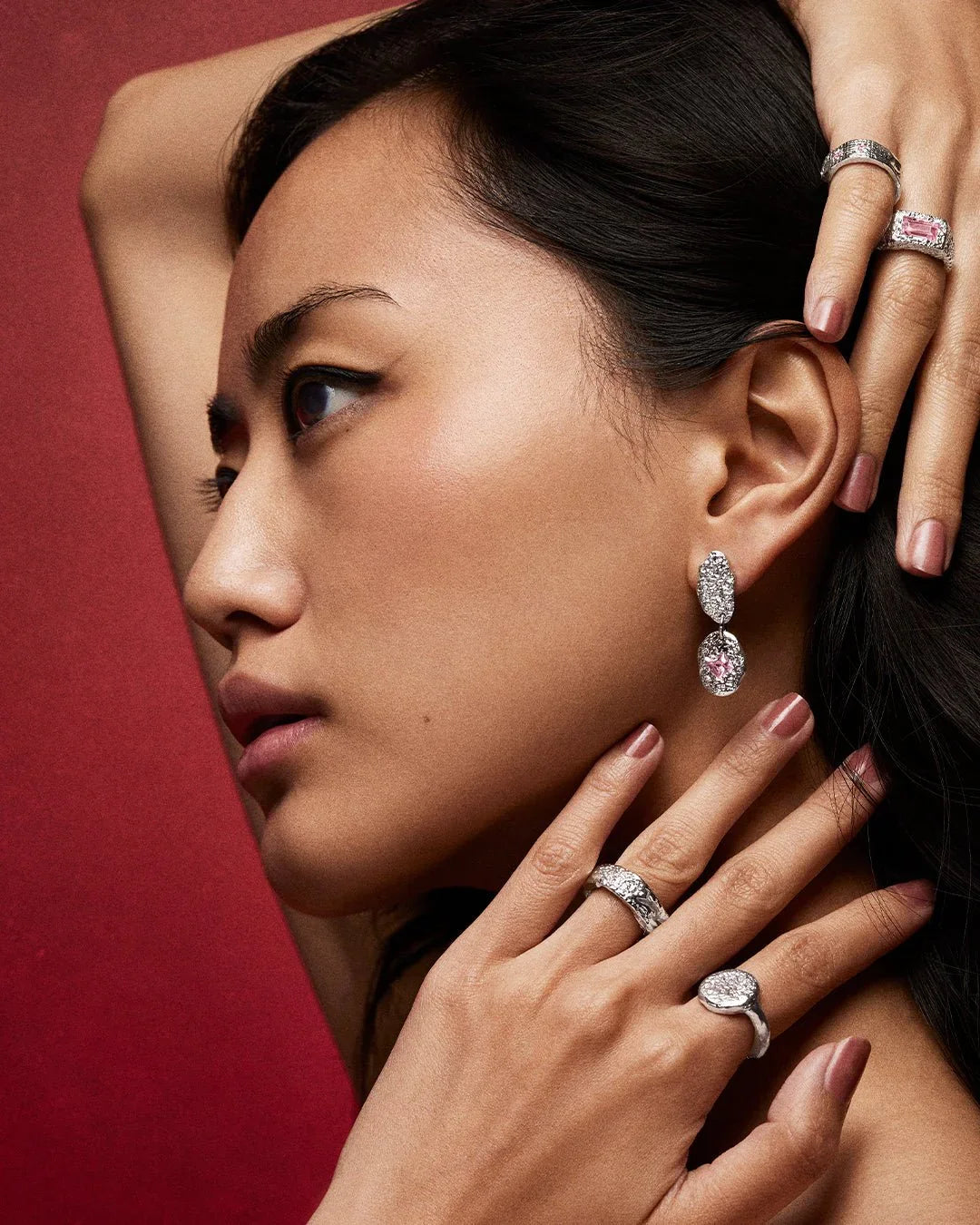 Keep dry by removing before bathing or swimming, and avoid contact with perfumes, lotions, hair sprays, and other chemicals. Use the provided khadi cloth to gently clean your jewelry and avoid harsh chemicals or rough materials.