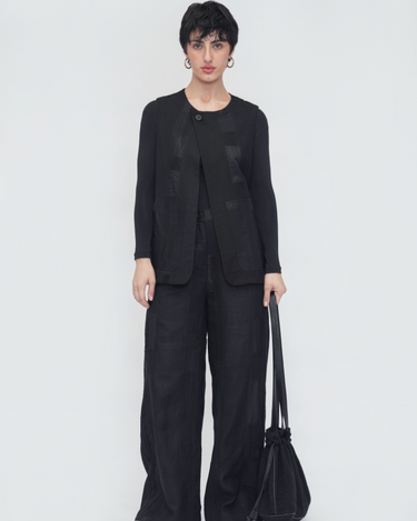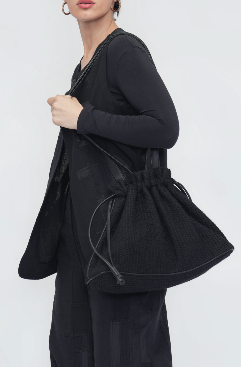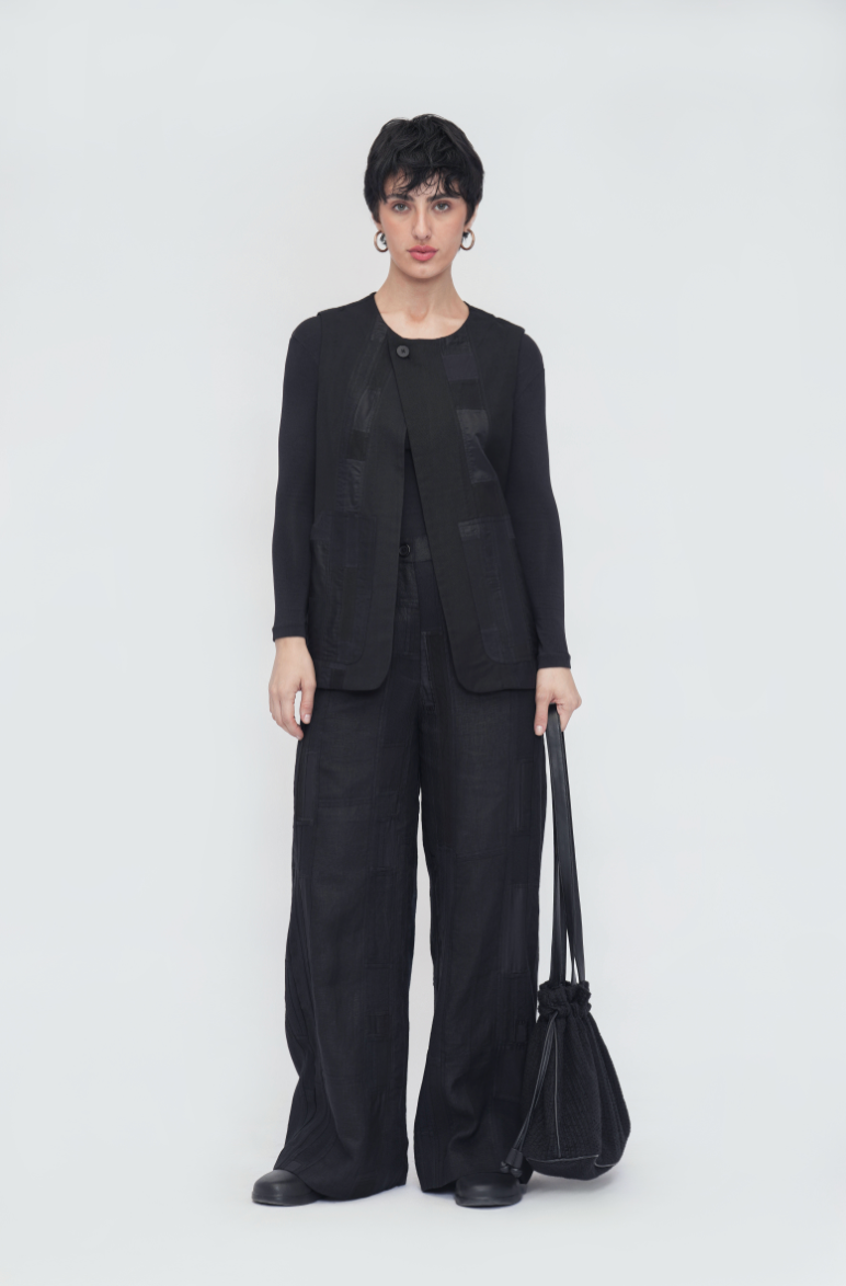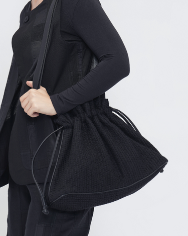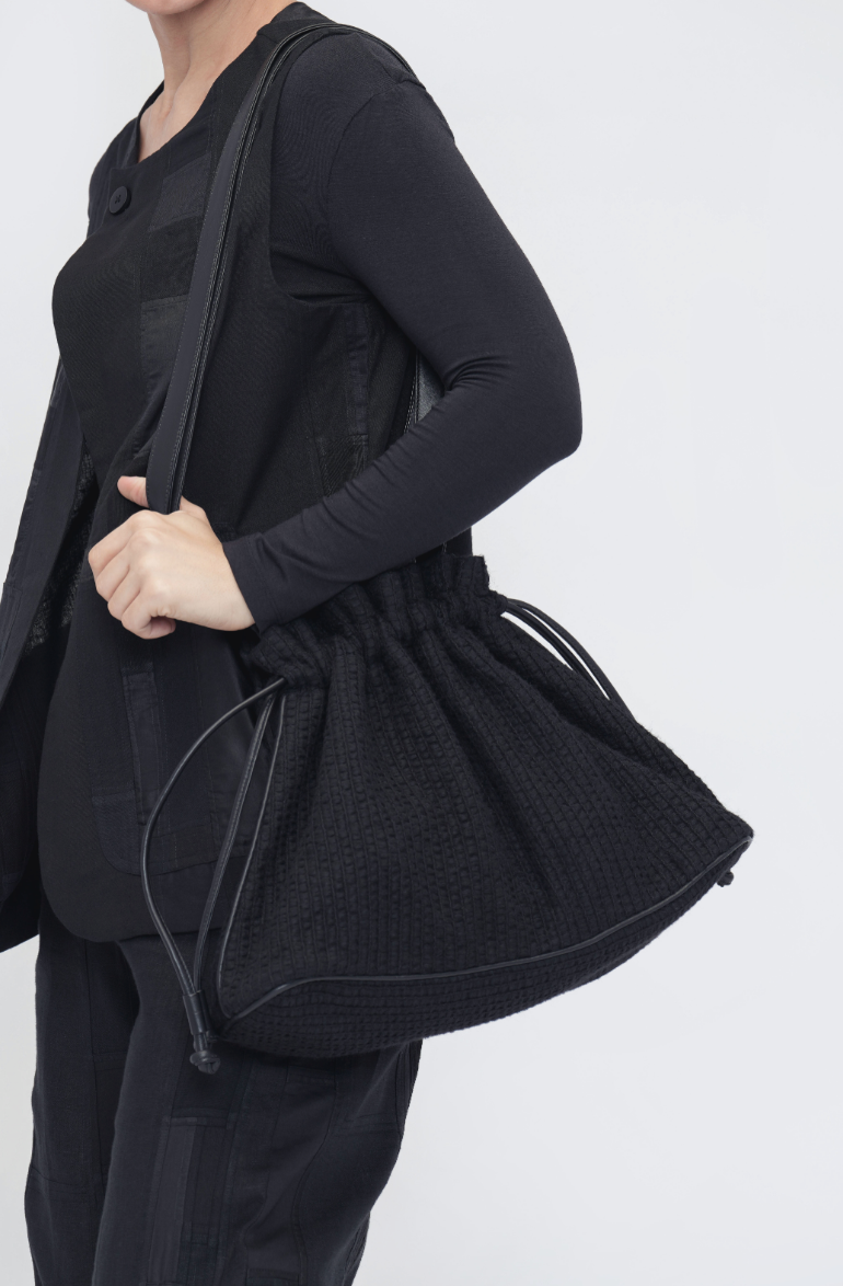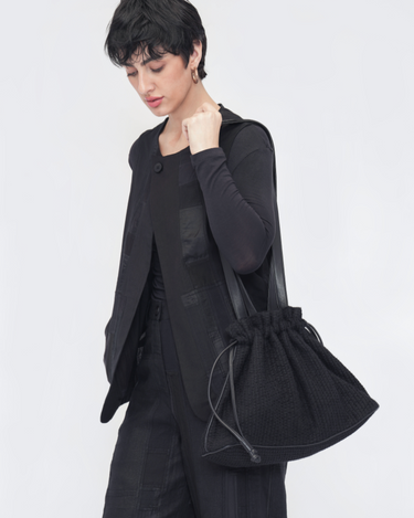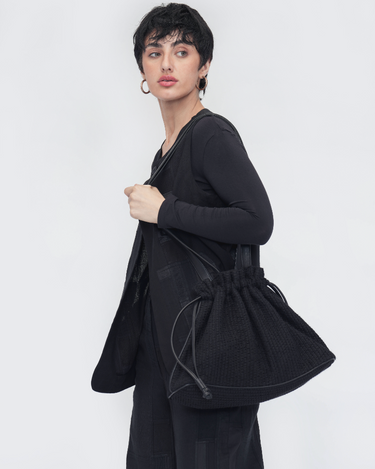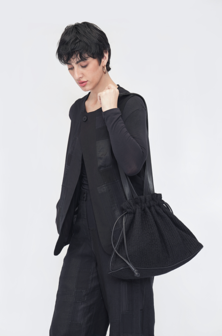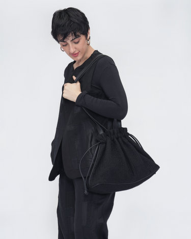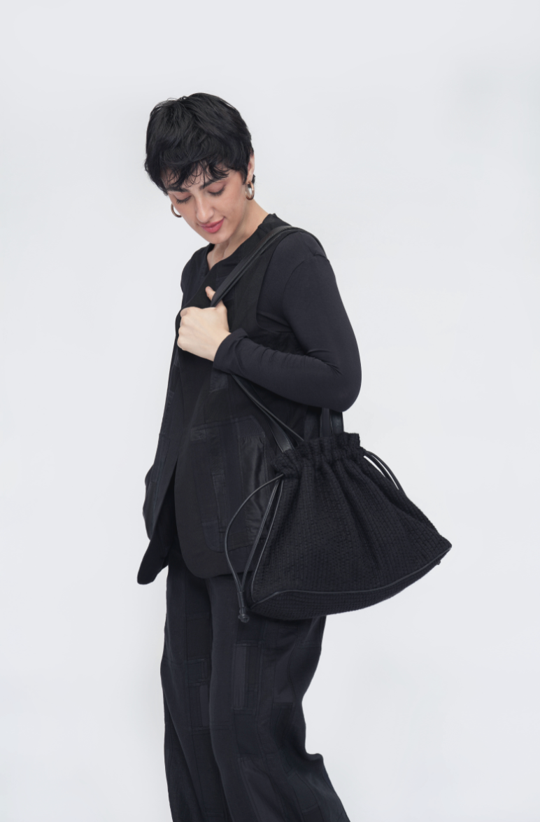 Made from leftover machine-embroidered fabric, the Namphke is a conscious creation—elegant enough for an evening out, and practical for a day on the move.