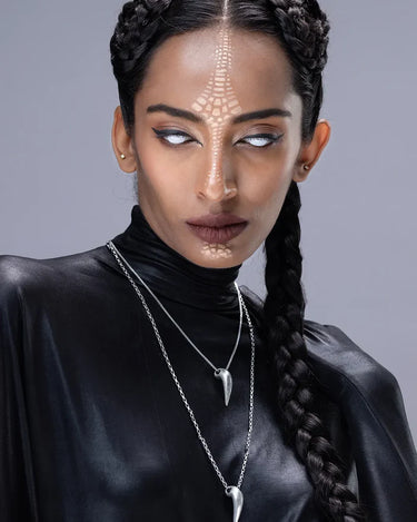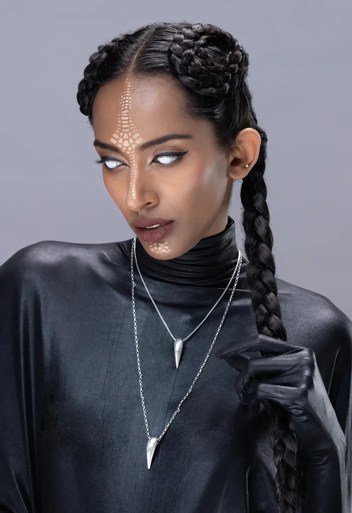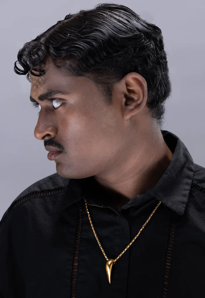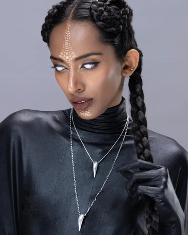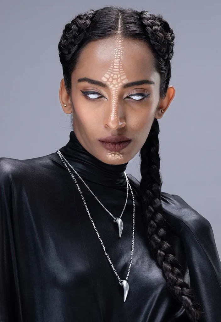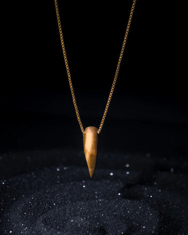 Fangryn; a neckpiece with the gilded fang of a serpent. The minimal yet bold design conveys the statement: the fury of a snake not to be reckoned with.