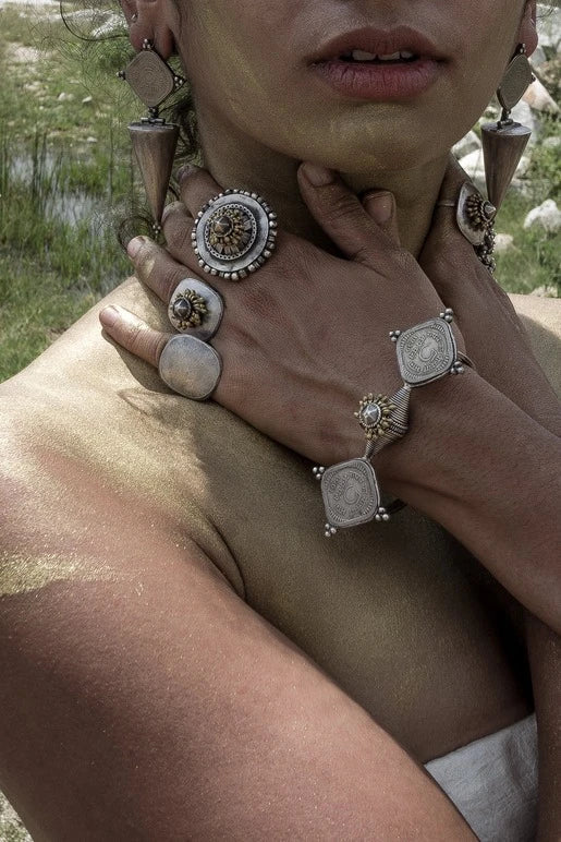 Care Information: Handle jewellery gently. Clean with silver cleansers like Silver Dip or Rooperi, or a baking soda solution, and wipe with a soft cloth. Keep dry by removing before bathing or swimming, and avoid contact with perfumes, lotions, hair sprays, and other chemicals.
