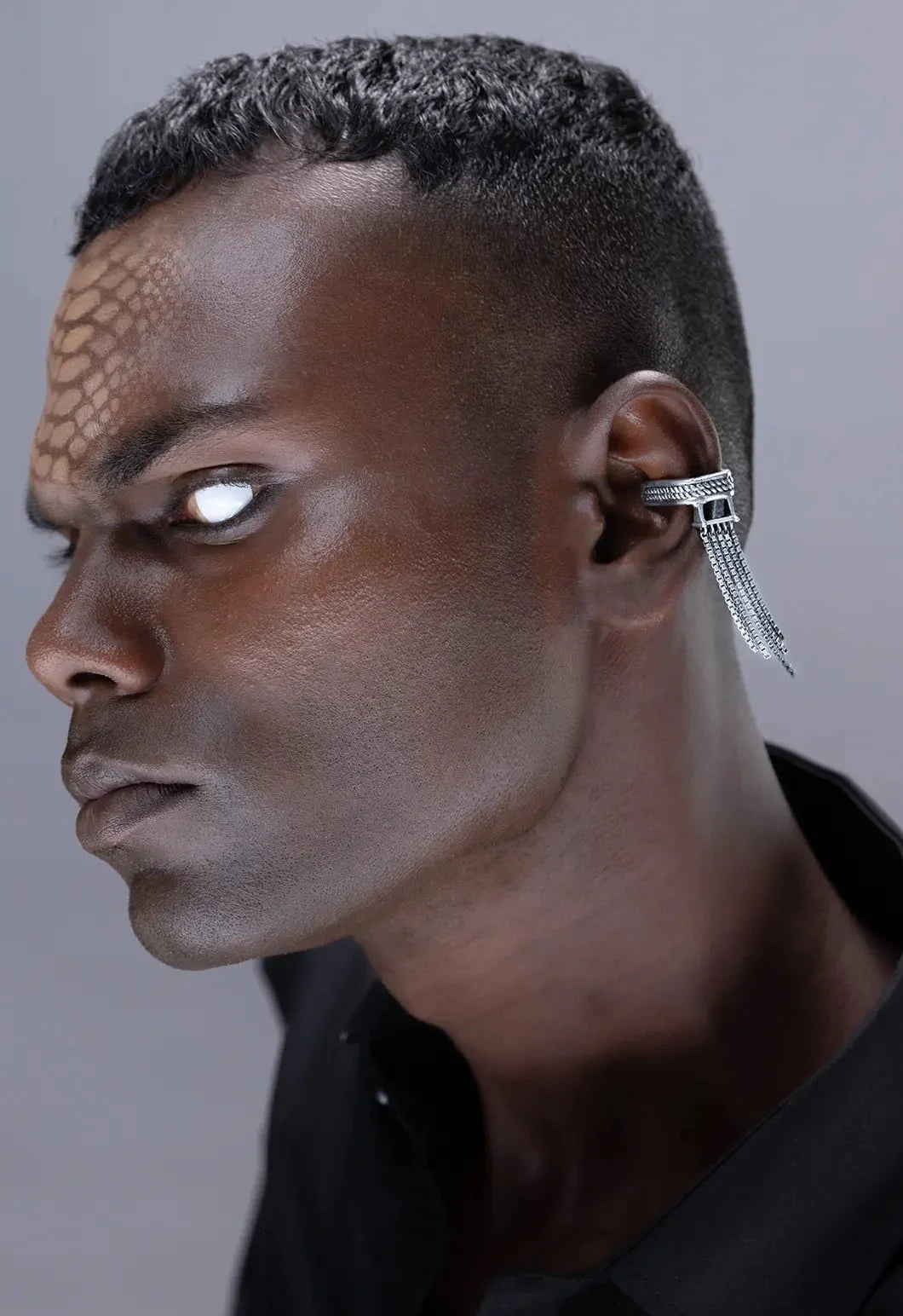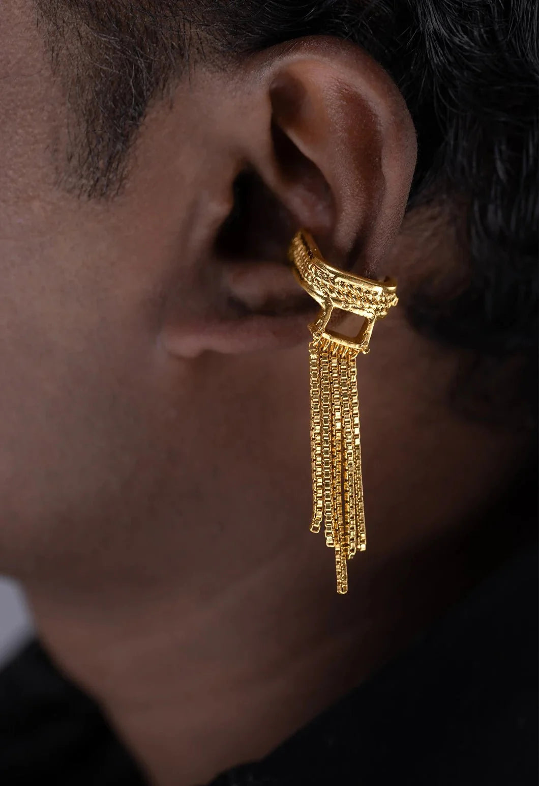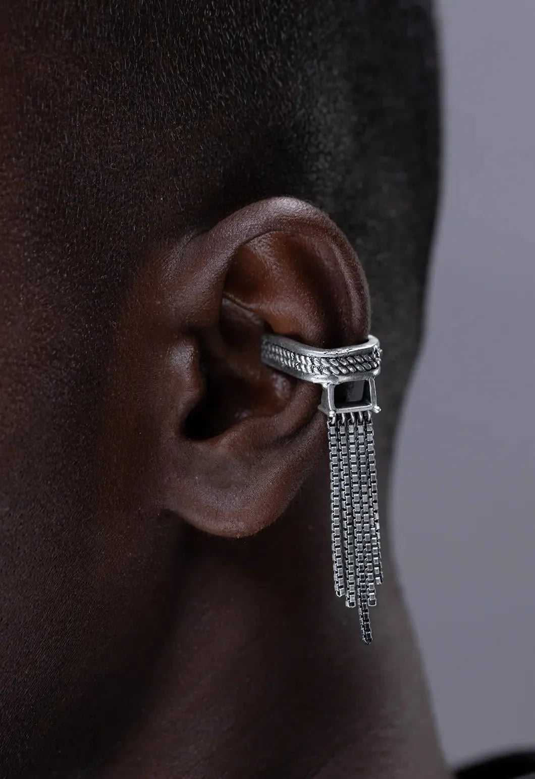 The Slinther ear clip features cascading chains that sway. It evokes the rhythmic slither of serpents.