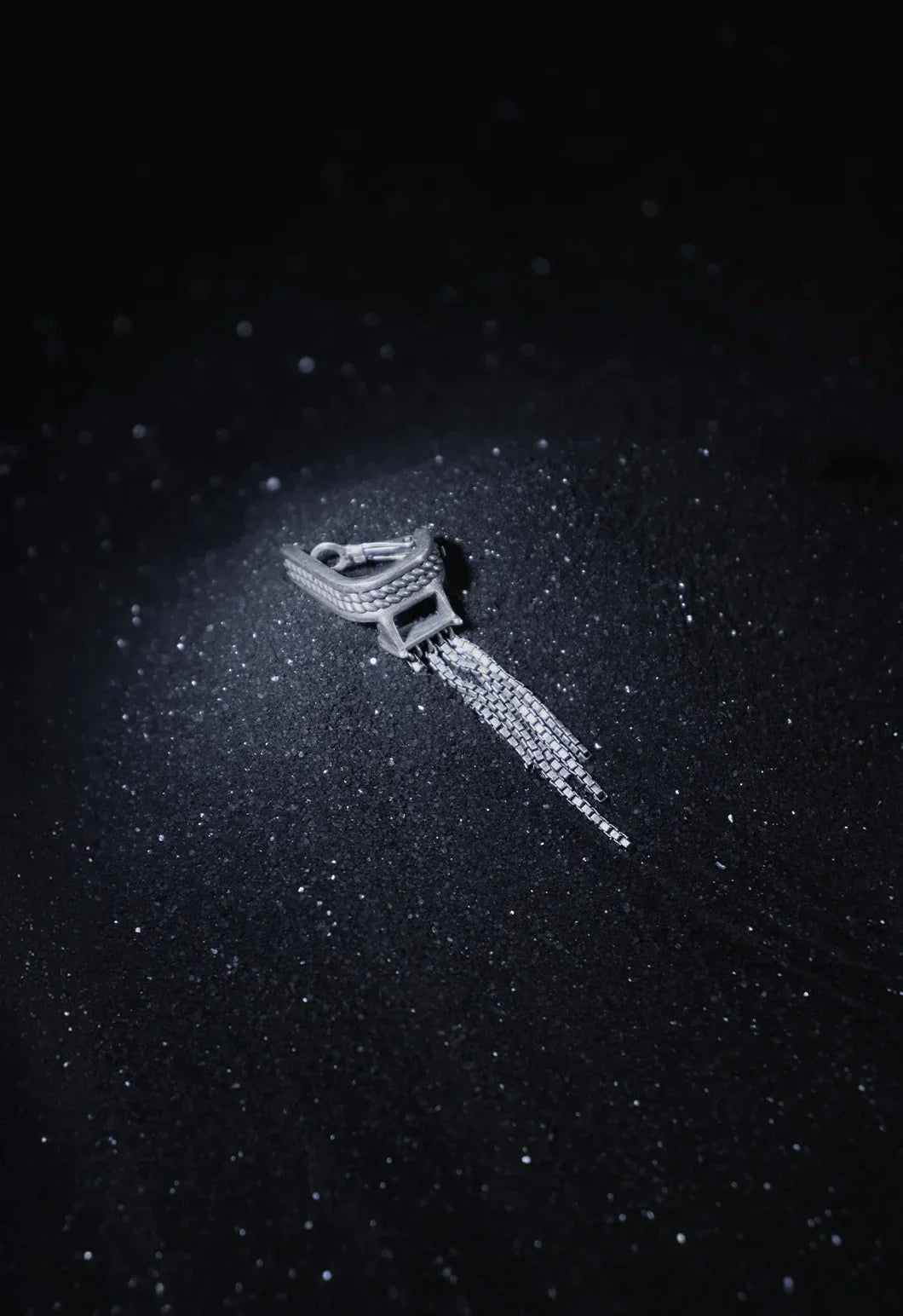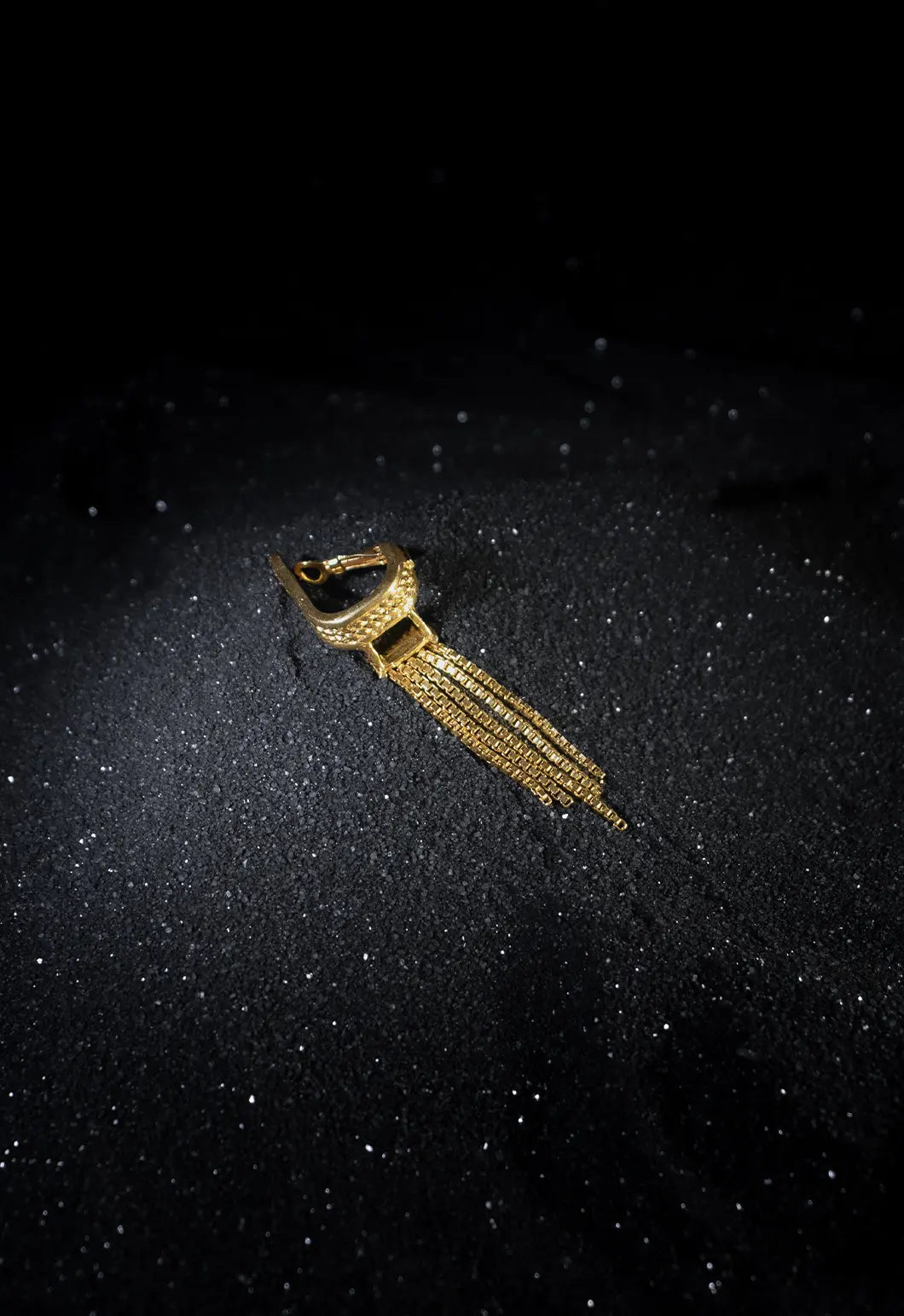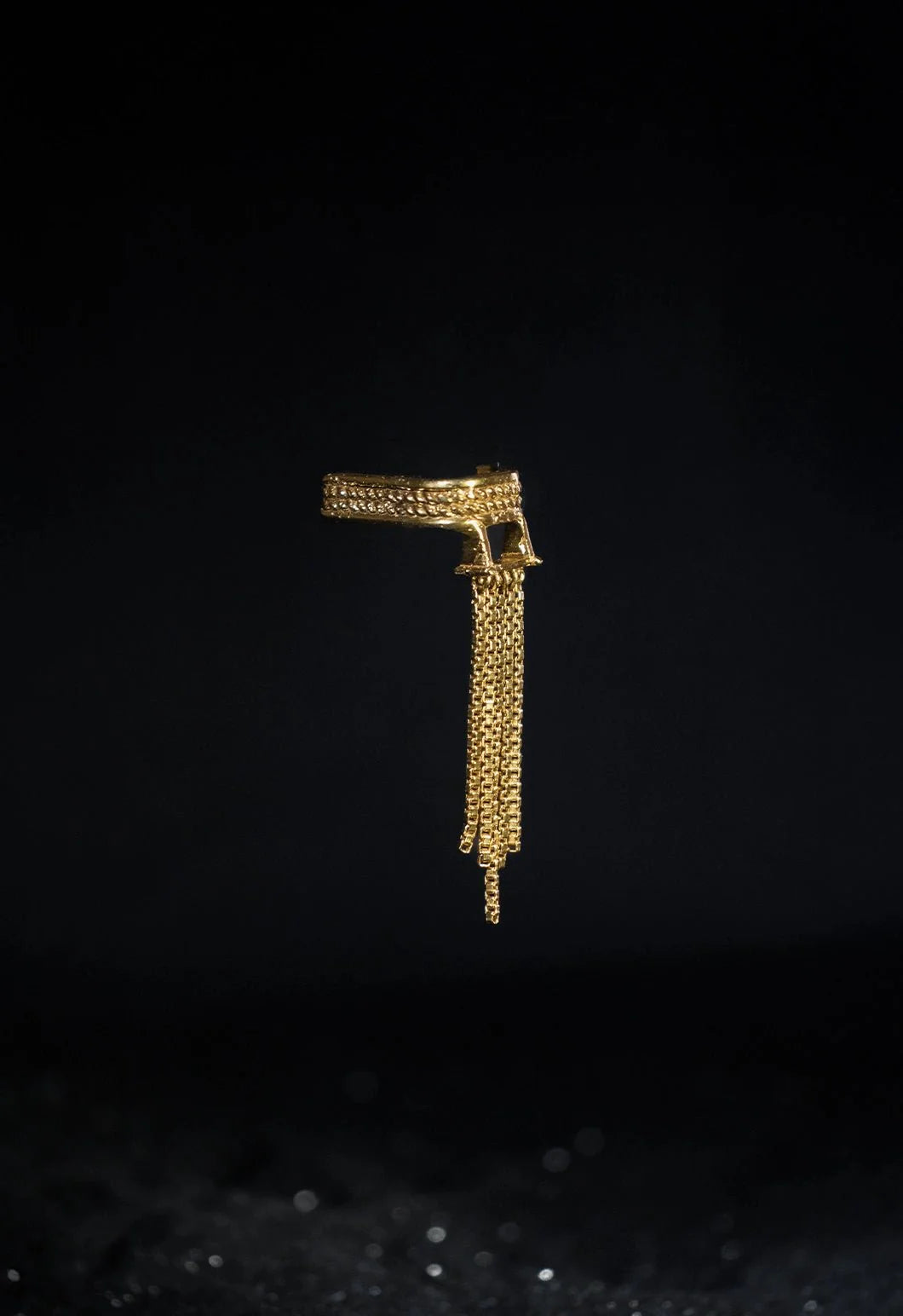 The Slinther ear clip features cascading chains that sway. It evokes the rhythmic slither of serpents.