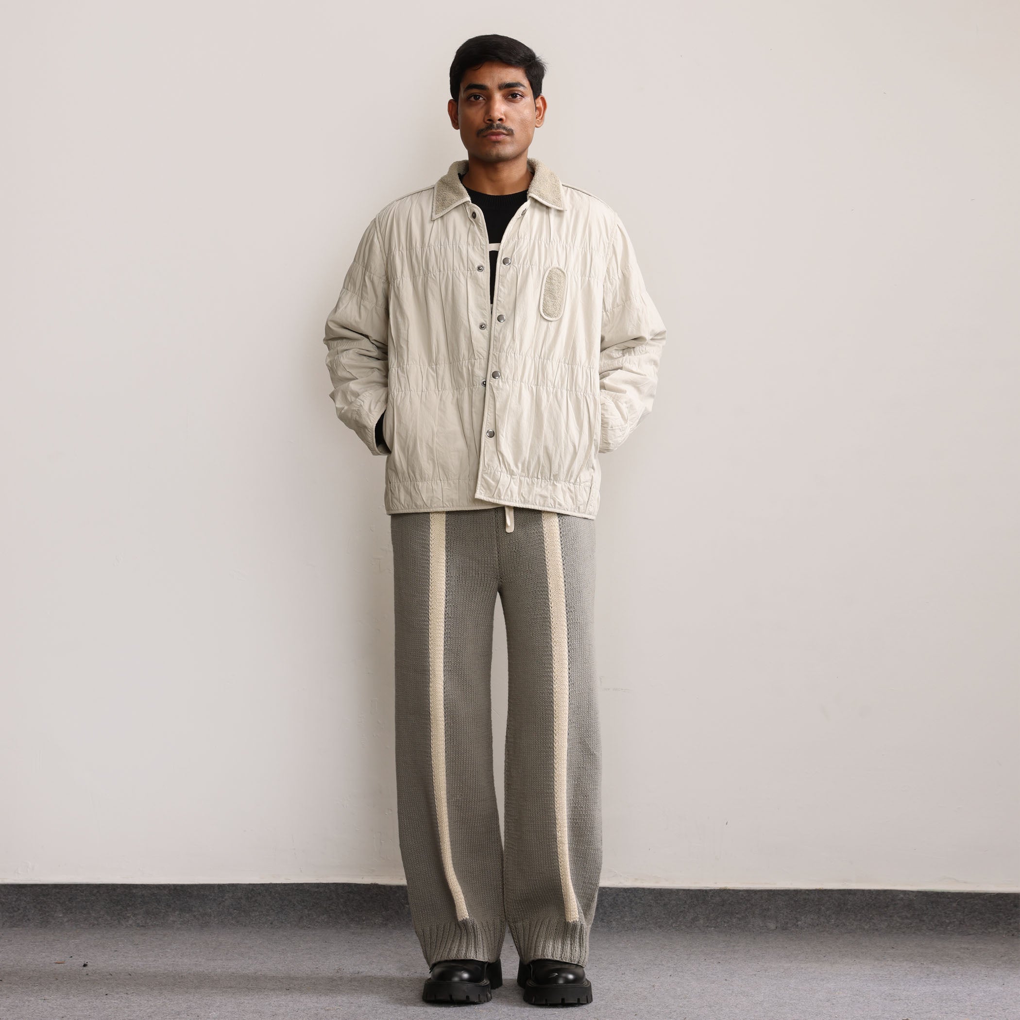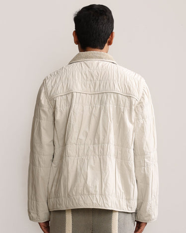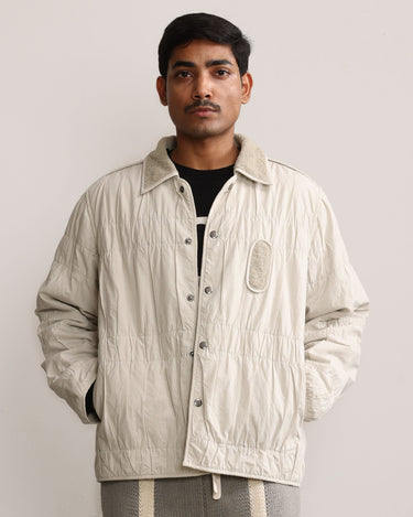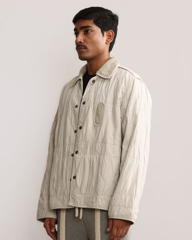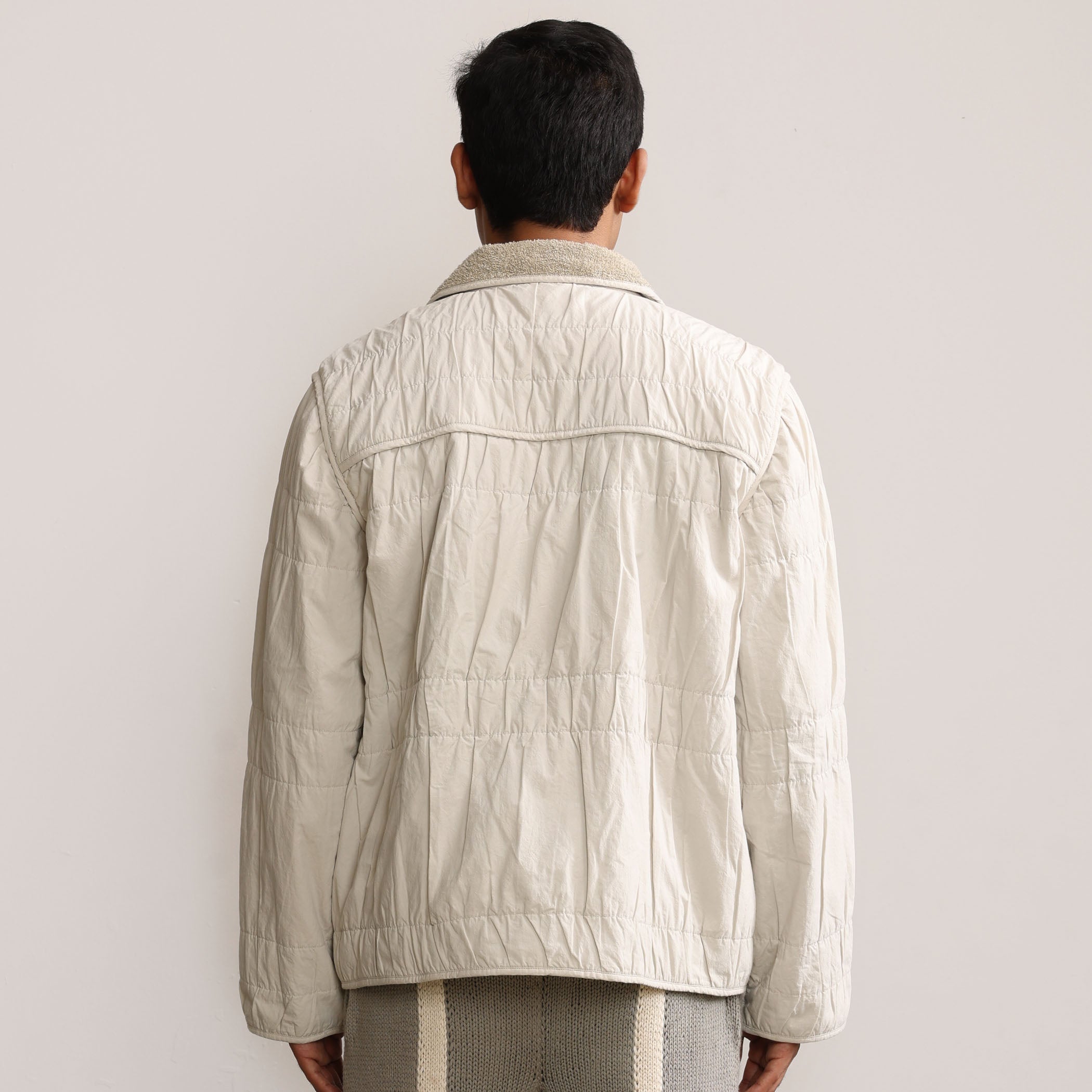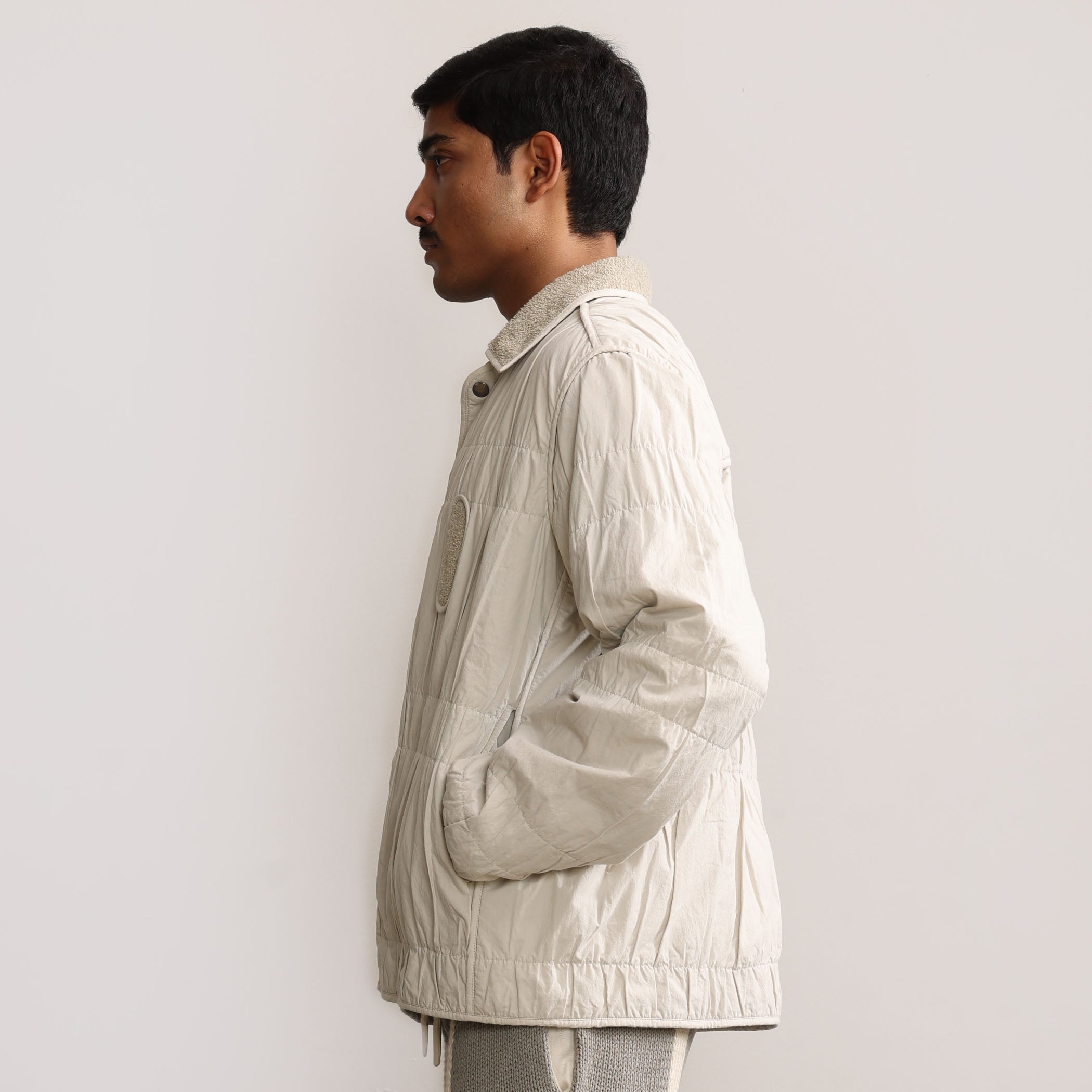 Margn signature wrinkle effect on shell fabric, natural dyed cotton terry lining, and edges finished with binding.