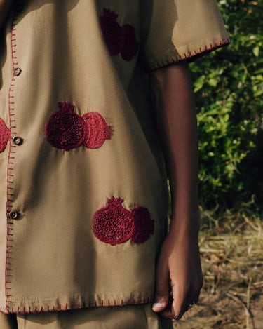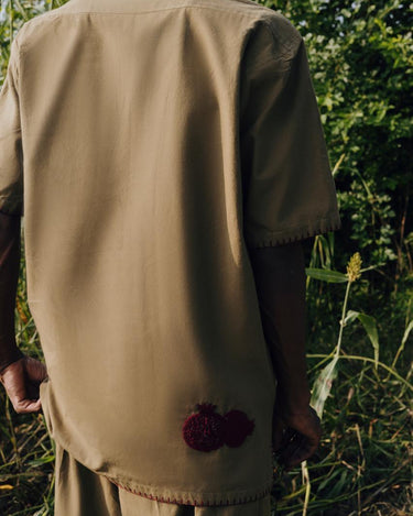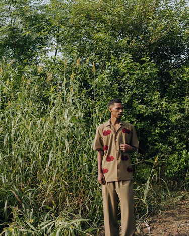 100% organic linen and hand embroidered. Camp shirt and matching easy draw string sailor pants, can be bought individually or as a set.