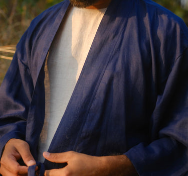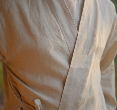 Light Beige Japanese Samue-inspired Linen Overshirt