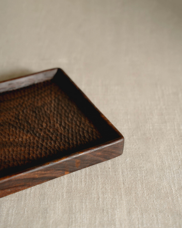 Handcrafted of beautiful, durable Indian Rosewood, these trays bring a casual style to serve and are perfect for indoor or outdoor occasions. The hand-carved texture adds to the rugged look.
