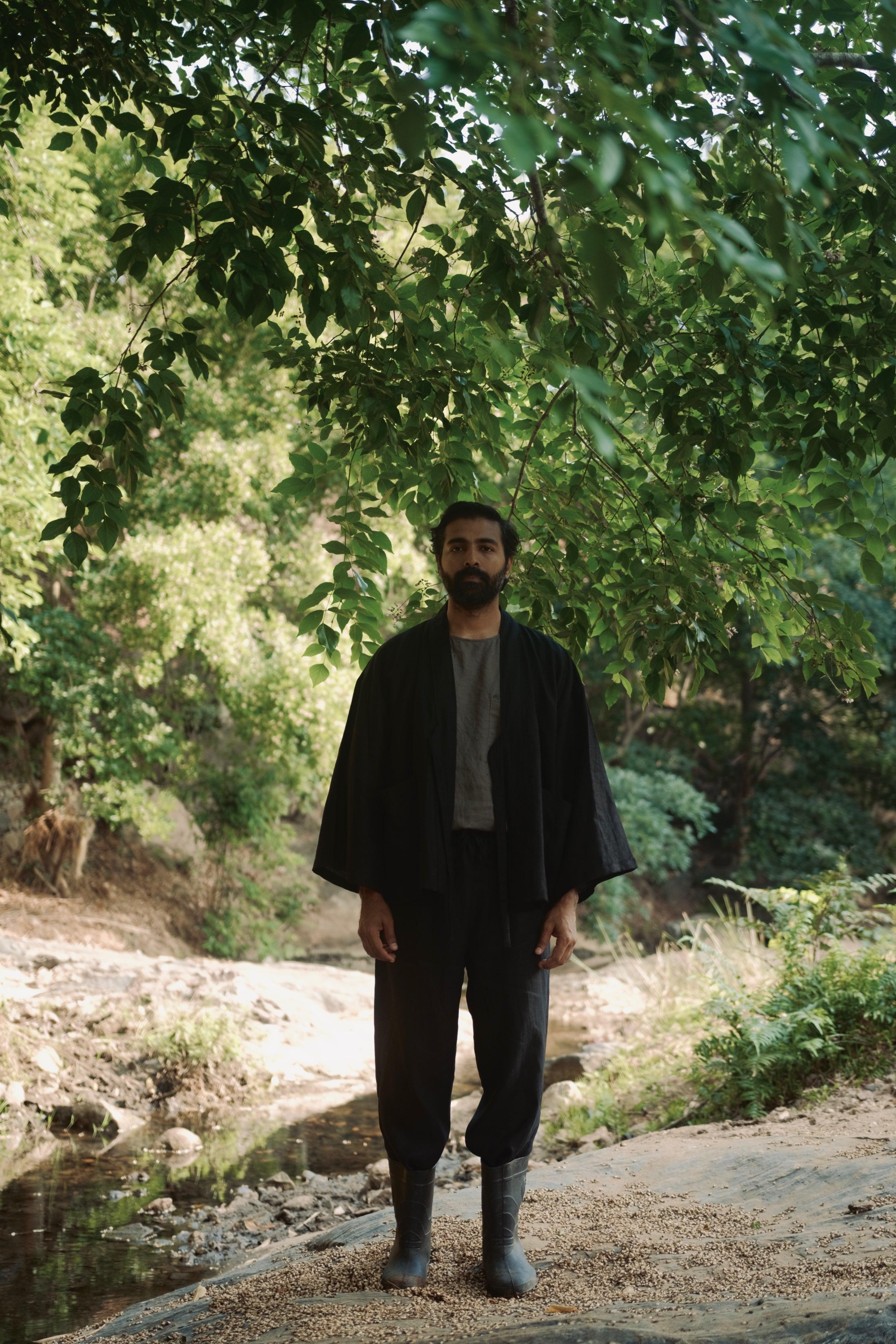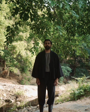 Drawing from traditional Yukata designs, this linen jacket features a relaxed fit and breathable, plant-based fabric, marrying Japanese elegance with modern comfort.