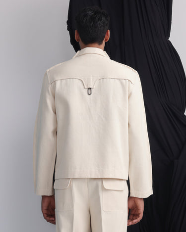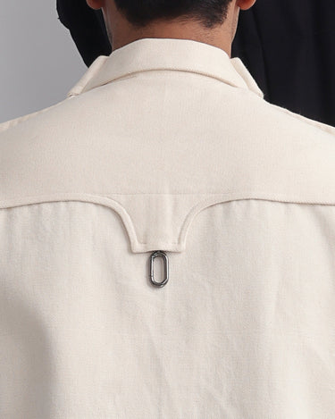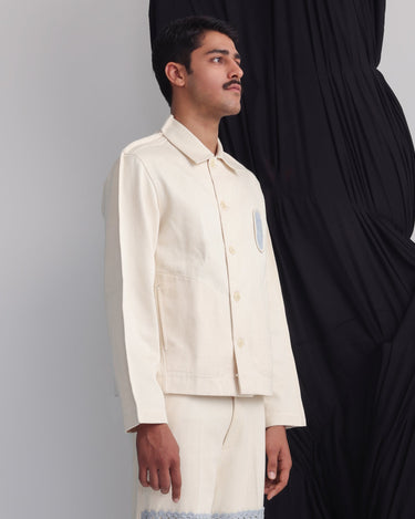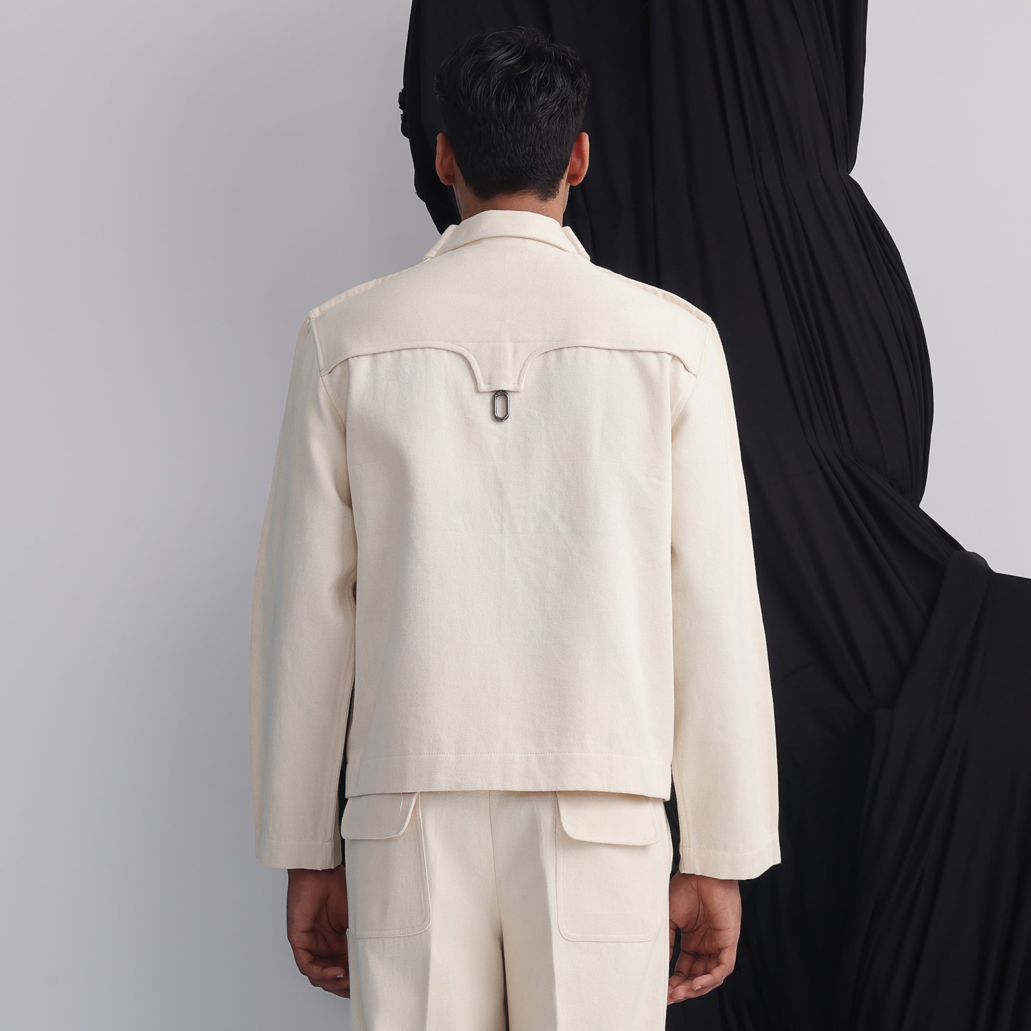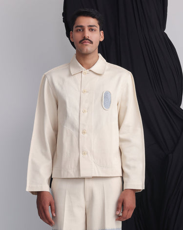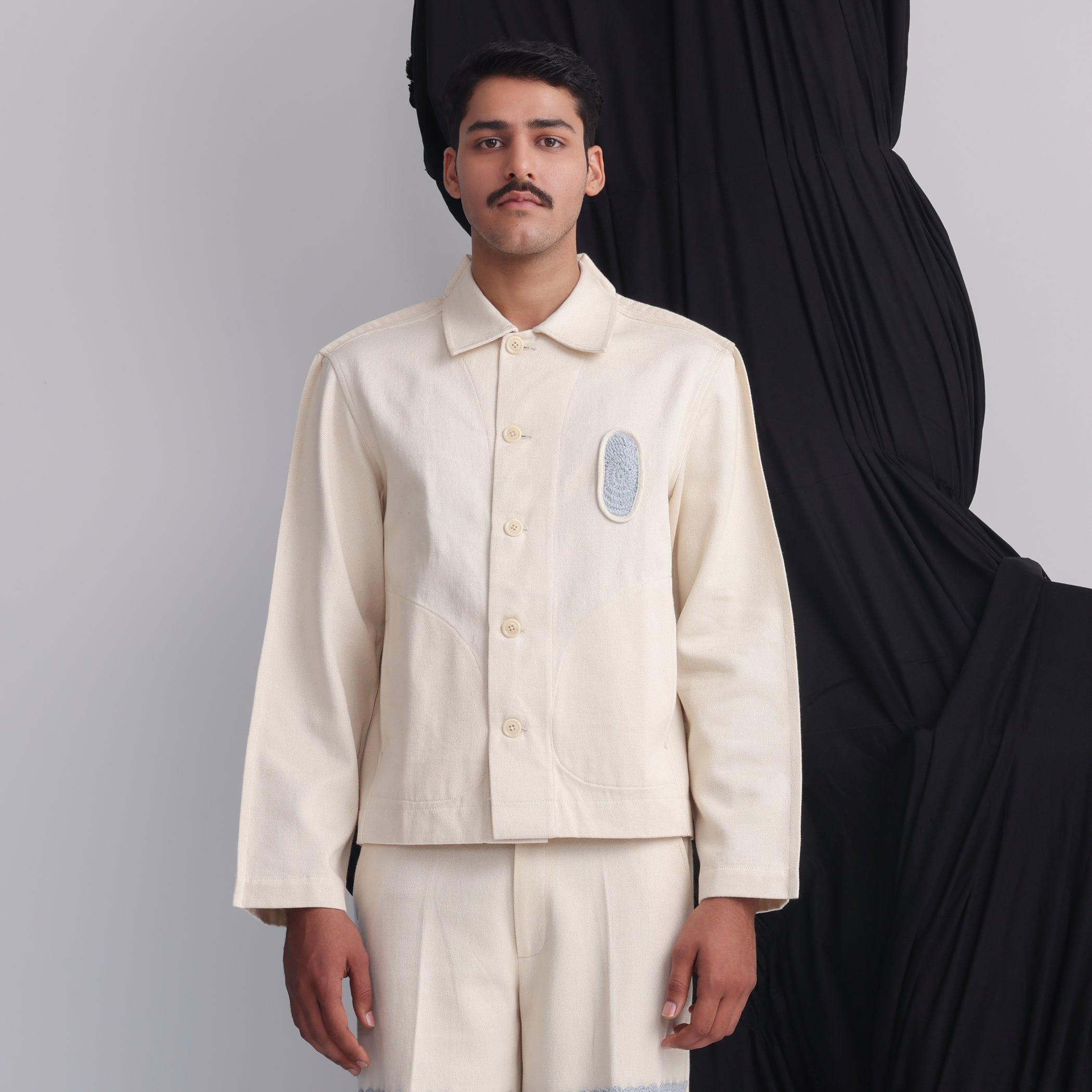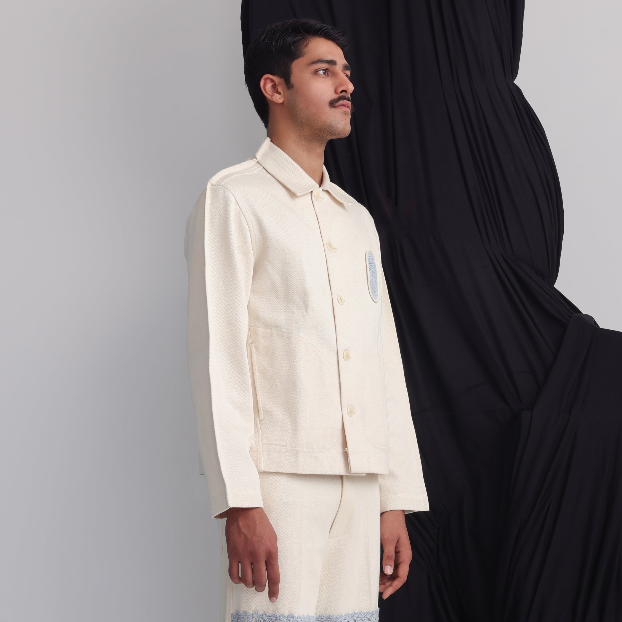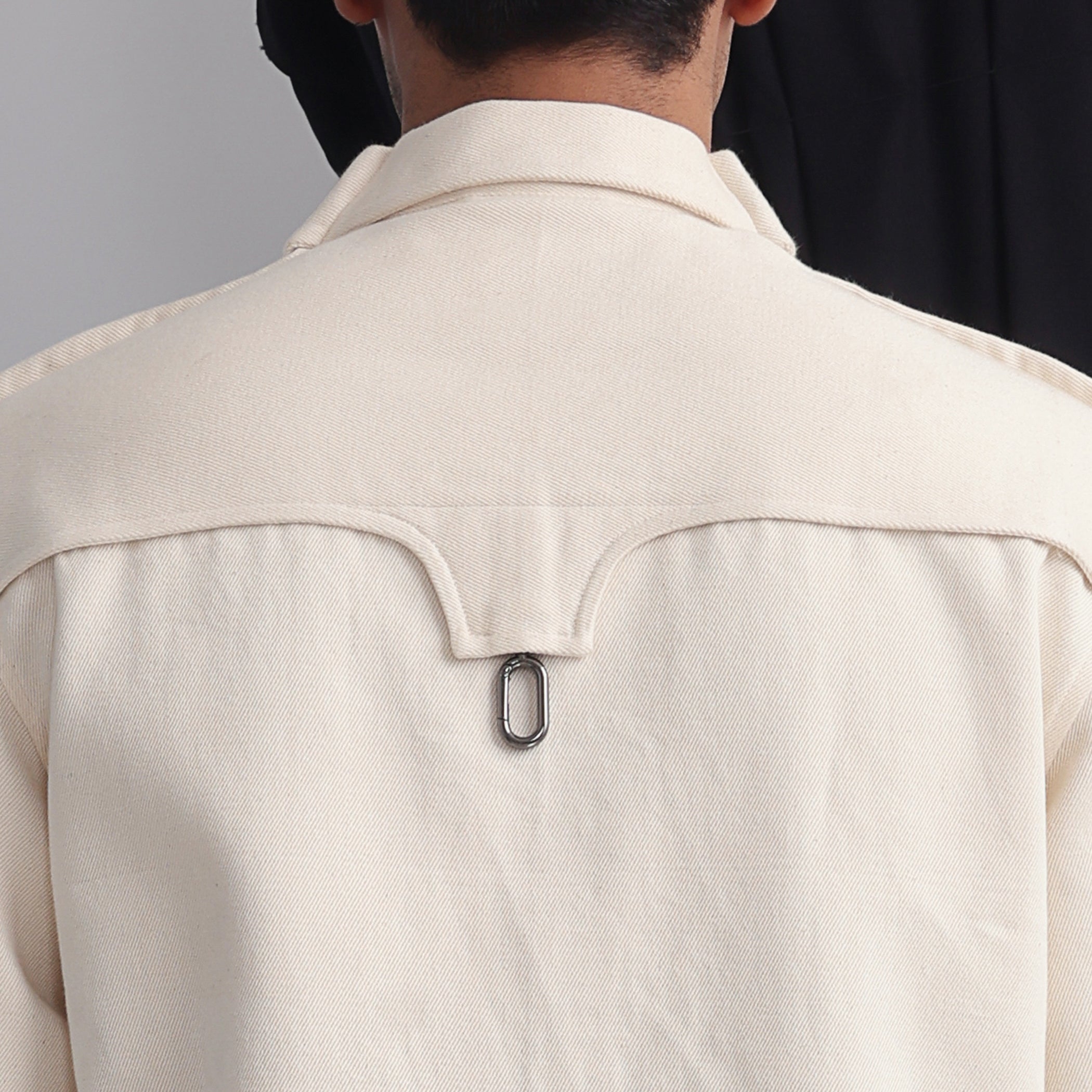 - Extra margin detail running from shoulder to sleeves, Bartack details all over, Human symbol crochet applique on left chest, Side pockets, Full sleeves, Signature human symbol metal hook attached to yoke at across back.