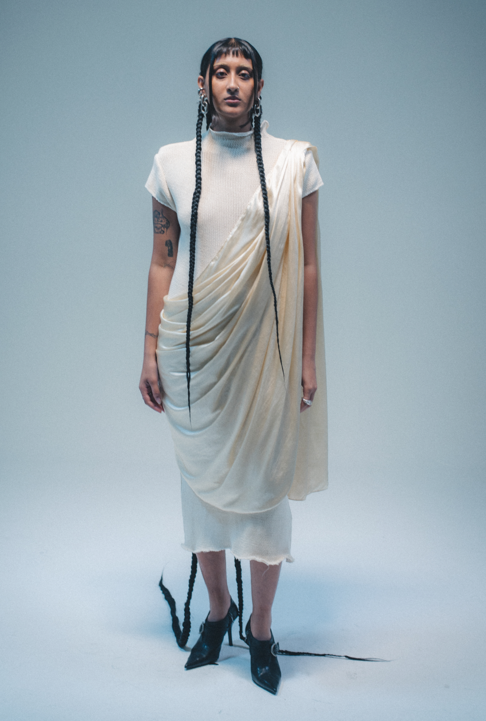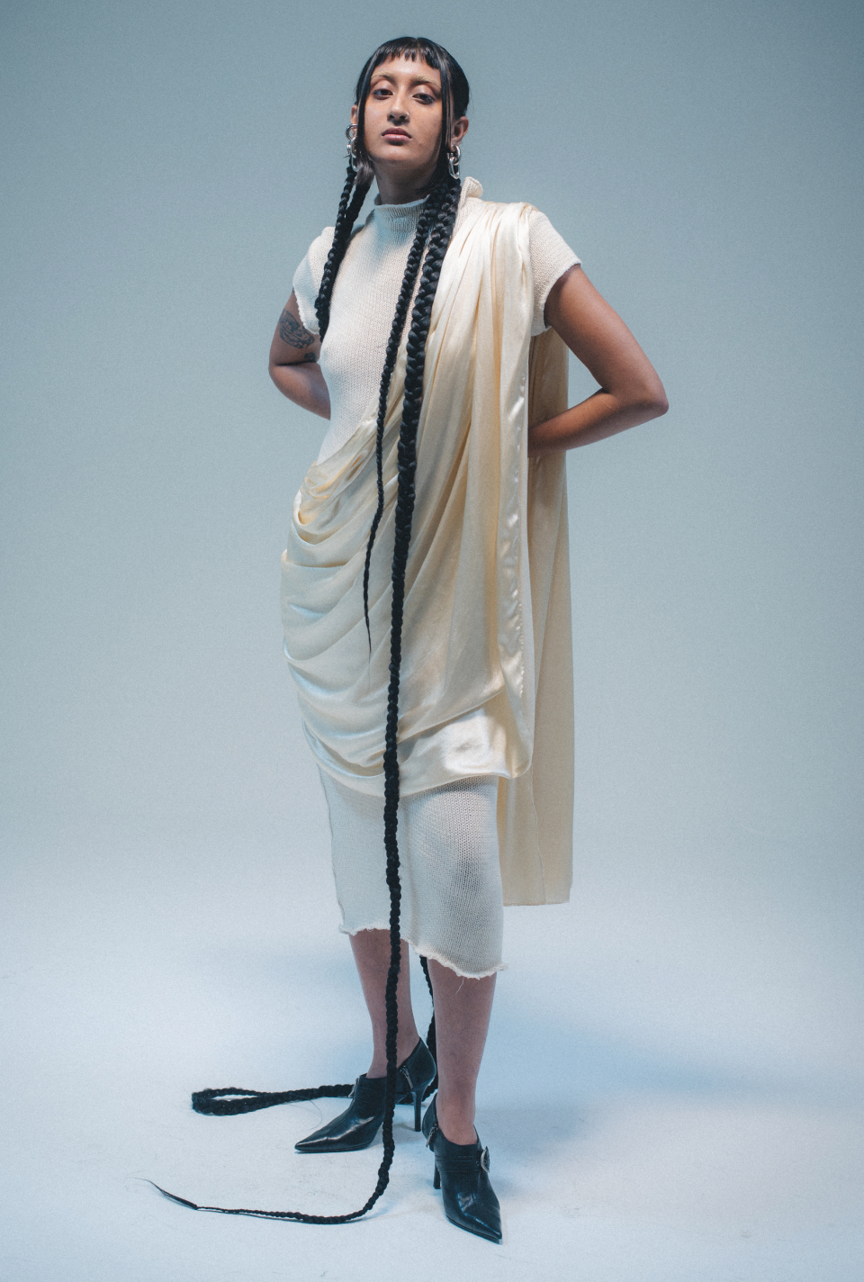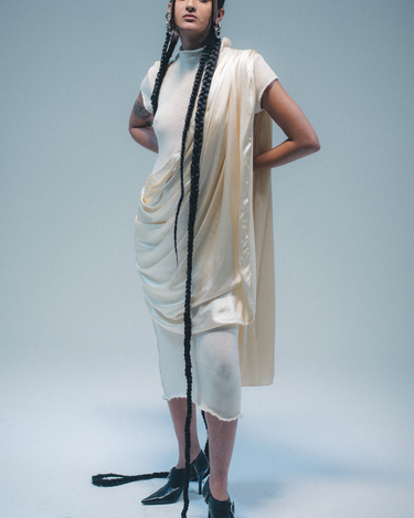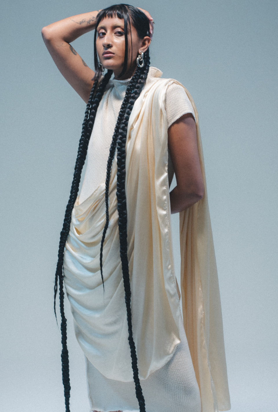 Knit sourced from the brand's partners at HP Singh in Delhi and hand draped in the brand's studio in New Delhi.