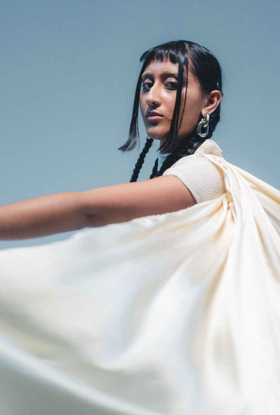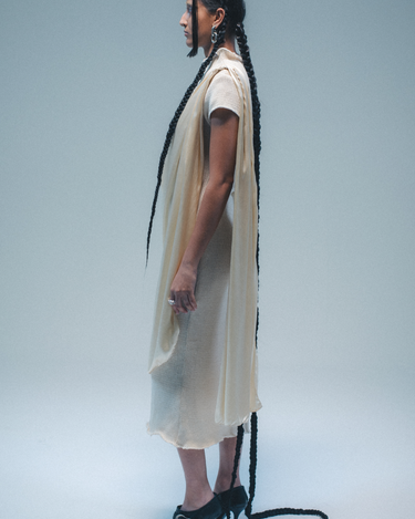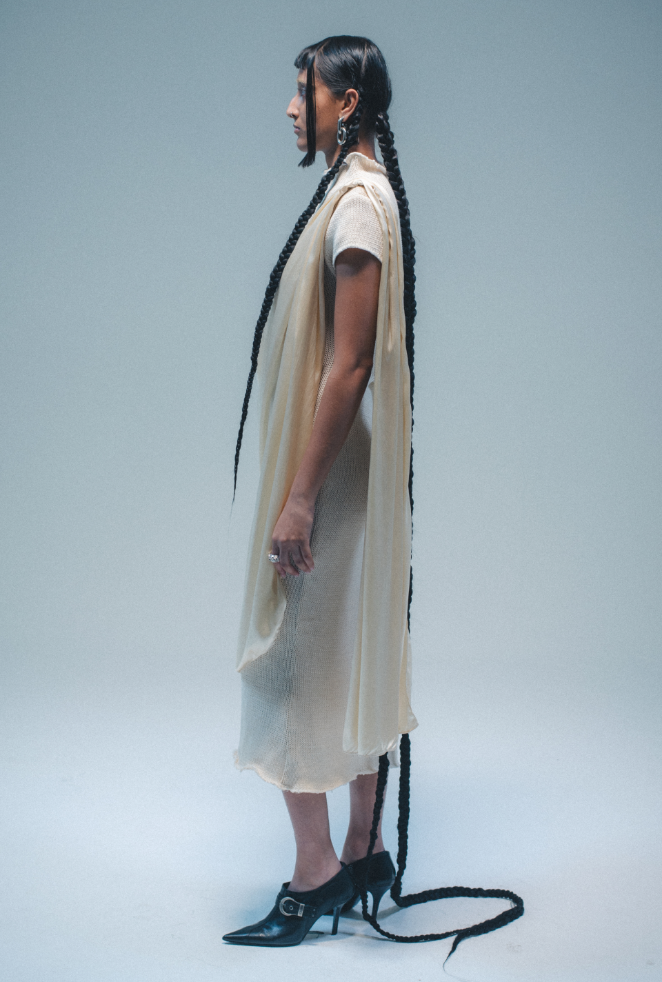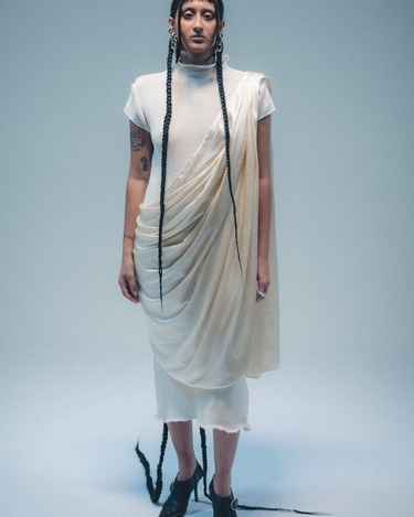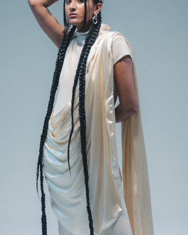 Knit sourced from the brand's partners at HP Singh in Delhi and hand draped in the brand's studio in New Delhi.