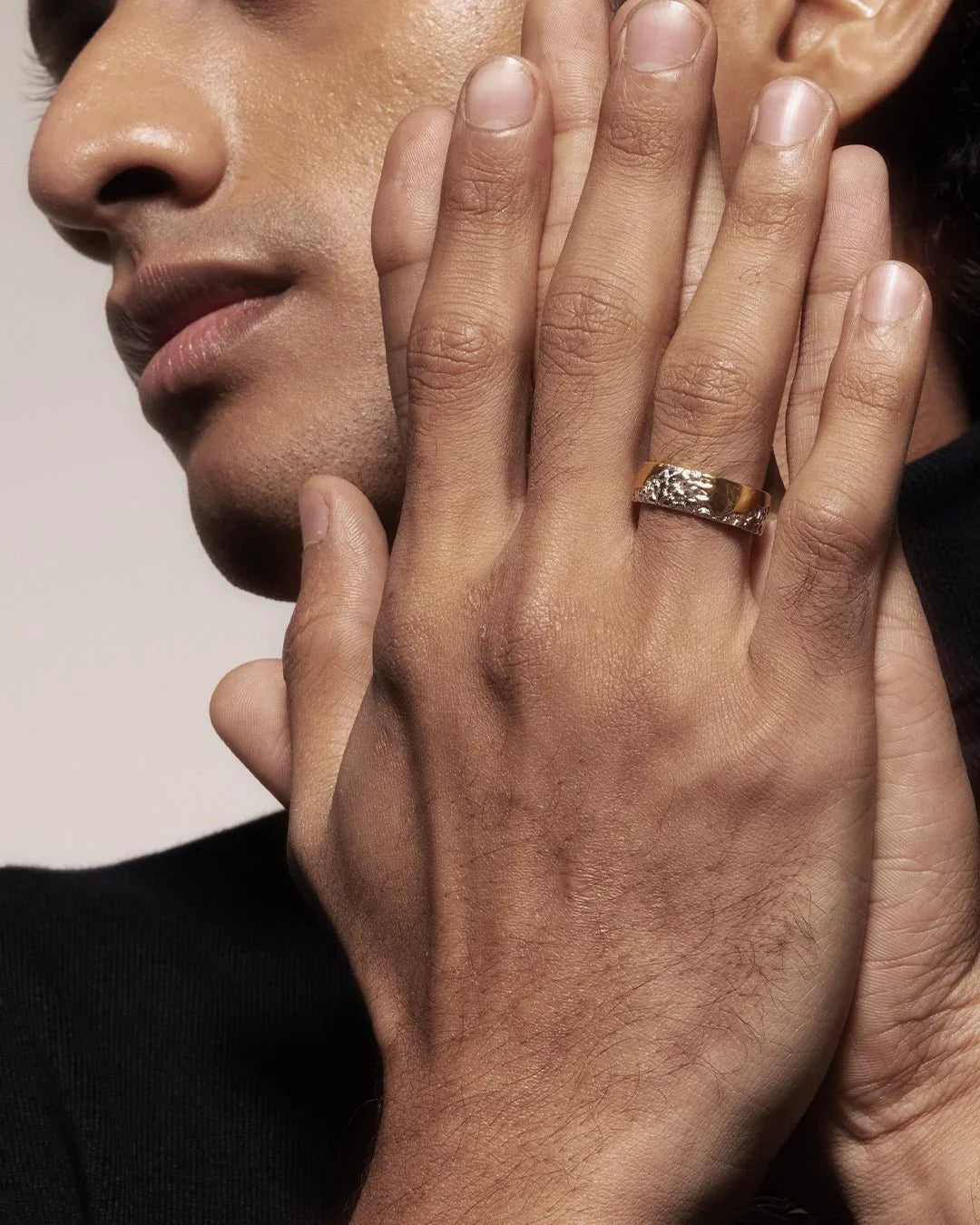 The Molten Ring mimics the natural flow of liquid metal, a band that embodied fluidity and texture.